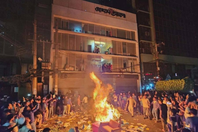 গত ১৮ ডিসেম্বর রাতে ওসমান হাদির মৃত্যু সংবাদ এসে পৌঁছতেই রাজধানী ঢাকা-সহ দেশের বিভিন্ন স্থানে প্রতিবাদ শুরু হয়। রাজনৈতিক দলমত নির্বিশেষে প্রথম জনতার ক্ষোভ আছড়ে পড়ে সংবাদপত্র অফিসের উপর। ঢাকায় জ্বালিয়ে দেওয়া হয় সে দেশের পয়লা নম্বর প্রথম আলোর কার্যালয়, চলে হামলা, লুটপাট। আরেক সংবাদপত্র ডেলি স্টারের অফিসেও হামলা চালানো হয়। এই ঘটনায় তদন্ত শুরু করে ঢাকা পুলিশ। দুই কার্যালয় মিলিয়ে মোট ৩২ কোটি টাকা ক্ষয়ক্ষতি হয়েছে বলে মামলায় জানানো হয়। অভিযান চালিয়ে সোমবার সকাল পর্যন্ত অন্তত ৩১ জনকে গ্রেপ্তার করা হয়েছে। ৪০০ থেকে ৫০০ জন অজ্ঞাতপরিচয় ব্যক্তির বিরুদ্ধে মামলা দায়ের করেছে ঢাকা মহানগর পুলিশ।