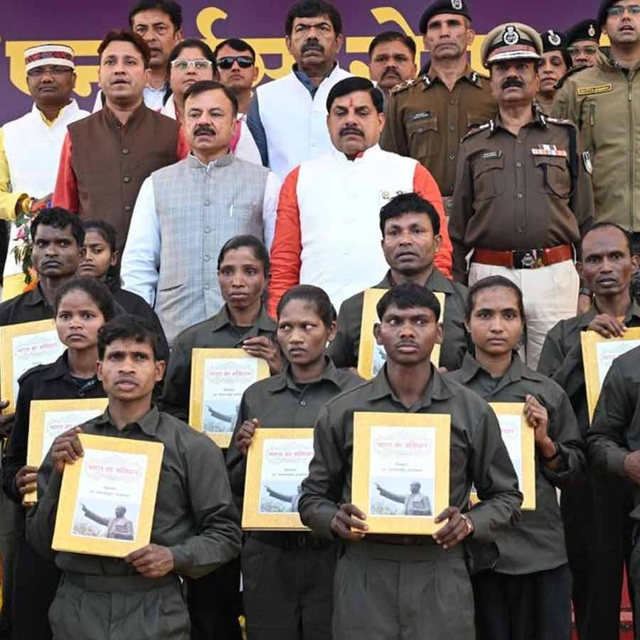 রবিবার বালাঘাটে মধ্যপ্রদেশের মুখ্যমন্ত্রী মোহন যাদবের উপস্থিতিতে আত্মসমর্পণ করেছেন ১০ মাওবাদী নেতা ও কর্মী। তাঁদের মধ্যে চার মহিলাও রয়েছেন। পুলিশ সূত্রে খবর, মহারাষ্ট্র-মধ্যপ্রদেশ-ছত্তীসগঢ় (এমএমসি) জ়োনে আত্মসমর্পণকারী ১০ নেতা-কর্মীর মাথার দাম সব মিলিয়ে ছিল ২ কোটি ৩৬ লক্ষ টাকা! এর মধ্যে রয়েছেন ‘মোস্ট ওয়ান্টেড’ কমান্ডার কবির ওরফে সোম ওরফে সুরেন্দ্র। কেবি ডিভিশনের সাব-জ়োনাল কমিটির সেক্রেটারি কবিরের মাথার দাম ছিল ৬২ লক্ষ টাকা। দরভা ডিভিশনের সামরিক প্রধানও ছিলেন তিনি। আর এক আত্মসমর্পণকারী নেতা রাকেশ ওরফে মণীশেরও মাথার দাম ছিল ৬২ লক্ষ টাকা। তিনিও বাহিনীর গুরুত্বপূর্ণ পদে ছিলেন। বাকিদের নাম লালসিং, শিল্পা, নবীন, জয়শীলা, বিক্রম, জ়ারিনা এবং সমর।