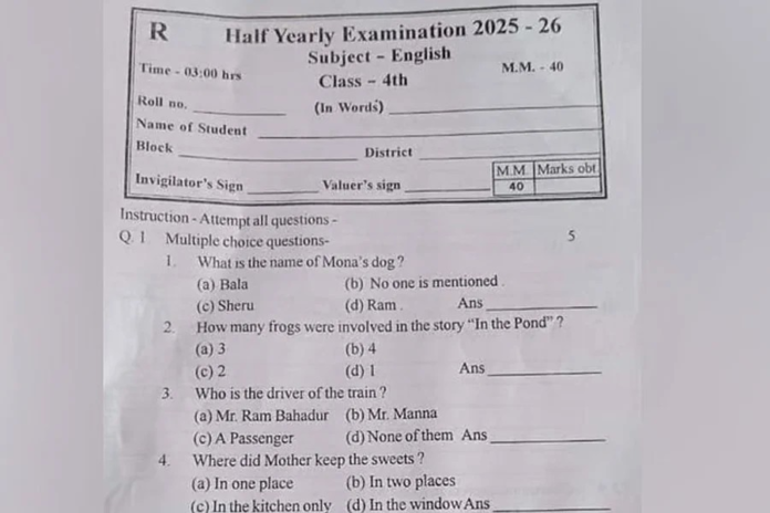 স্যন্দন ডিজিটেল ডেস্ক ০৮ জানুয়ারি : ছত্তিসগড়ের একটি স্কুলের প্রশ্নপত্র নিয়ে এবার উত্তেজনা তুঙ্গে উঠেছে। মহাসমুন্দ জেলায় একটি স্কুলের পরীক্ষায় ইংরেজি ভাষার প্রশ্ন নিয়ে শুরু হয়েছে চাপানউতোর। এই প্রশ্ন একটি বিতর্কের জন্ম দিয়েছে। জানা গিয়েছে, একটি প্রশ্নে কুকুরের নাম বেচক্সহে নিতে বলা হয়। উত্তরের বিকল্পগুলির মধ্যে ‘রাম’ শব্দটি ছিল।