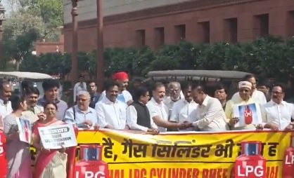 নয়াদিল্লি, ১২ মার্চ (হি.স.): এলপিজি সিলিন্ডার ঘাটতির প্রতিবাদে বৃহস্পতিবার সকালে সংসদ চত্বরে বিক্ষোভ প্রদর্শন করলেন বিরোধীরা। কংগ্রেস, তৃণমূল কংগ্রেস-সহ বিভিন্ন বিরোধী দলের সাংসদরা একজোট হয়ে কেন্দ্রের বিরুদ্ধে সরব হন। লোকসভার বিরোধী দলনেতা রাহুল গান্ধী, কংগ্রেস সাংসদ কে সি বেণুগোপাল প্রমুখ এই বিক্ষোভ কর্মসূচিতে অংশ নেন।