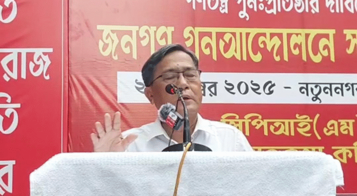 যারা অন্যায় ভাবে এই ঘটনা সংঘটিত করেছে তাদের নিন্দা জানায় সিপিআইএম। বিরোধী দলনেতা বলেন, বিরোধী দল মানে রাজ্যের উন্নয়নে বাধা দেওয়া, শাসক দলের কাজে বাধা দেওয়া কর্তব্য নয়। মাক্সবাদি কমিউনিস্ট পার্টি সরকারে থাকা অবস্থায় যেভাবে রাজ্যের উন্নয়নের চেষ্টা করেছে, বর্তমানে বিরোধী দলে থেকে সরকারের ভুলত্রুটি চিহ্নিত করে সুপরামর্শ দিয়ে রাজ্যের উন্নয়নে চেষ্টা করছে। এটাই প্রধান বিরোধী দলের পবিত্র কর্তব্য বলে মনে করে মার্কসবাদী কমিউনিস্ট পার্টি। সেই জায়গায় দাঁড়িয়ে আজকে কর্মসূচি সামগ্রিকভাবে এরই একটা অঙ্গ হিসেবে গণতান্ত্রিক ব্যবস্থাকে আরো বেশি শক্তিশালী করে। তিনি আরো বলেন বর্তমান সরকার গত সাড়ে সাত বছরের এক কিলোওয়াট বিদ্যুৎ নতুন করে উৎপাদন করেনি। অথচ স্মার্ট মিটার এবং বিদ্যুৎ মাশুল বৃদ্ধি করে জনগণের উপর বাড়তি বোঝা চাপিয়ে দিয়েছে। সবচেয়ে উদ্বেগের বিষয় হলো গত সাড়ে সাত বছরে বর্তমান বিজেপি নেতৃত্বাধীন রাজ্য সরকার ত্রিপুরায পাঁচবার বিদ্যুৎ বৃদ্ধি করেছে। আর রাজ্যের বিদ্যুৎ মন্ত্রী দাবি করছেন অন্তর্জাতিক স্তরে নাকি গ্যাসের দাম বৃদ্ধি পেয়েছে। সেই গ্যাস ত্রিপুরা রাজ্যে কোন জাহাজে আসে? যে রতন বাবু আপনি ত্রিপুরা রাজ্যের বিদ্যুৎ মাশুল, সিএনজি এবং পিএনজি -র মূল্য বৃদ্ধি করেছেন? আর এই অপরাধের বিরুদ্ধে যখন বিরোধী রাজনৈতিক দল আজকে এই কর্মসূচির ডাক এলাকায় দিয়েছিলেন তখন আক্রমণ সংঘটিত করল তারা। কিন্তু আজকের এই কর্মসূচির অনেক যুক্তি আছে। কিন্তু কোথাও নরেন্দ্র মোদি তুমি গদি ছাড়ো, ডাক্তার মানিক সাহা তুমি গদি ছাড়ো স্লোগান দেওয়া হয়নি বলে কটাক্ষ করলেন বিরোধী দলনেতা। তিনি আরো বলেন, বিজেপি রাজ্যের বিরোধীদের গণতান্ত্রিক অধিকারের উপর প্রতিদিন আক্রমণ করে চলেছে। মানুষের দৃষ্টি এবং চেতনাকে অন্যদিকে ধাবিত করতে এগুলি করছে। কারণ বিজেপির পায়ের নিচের মাটি সরে গেছে।