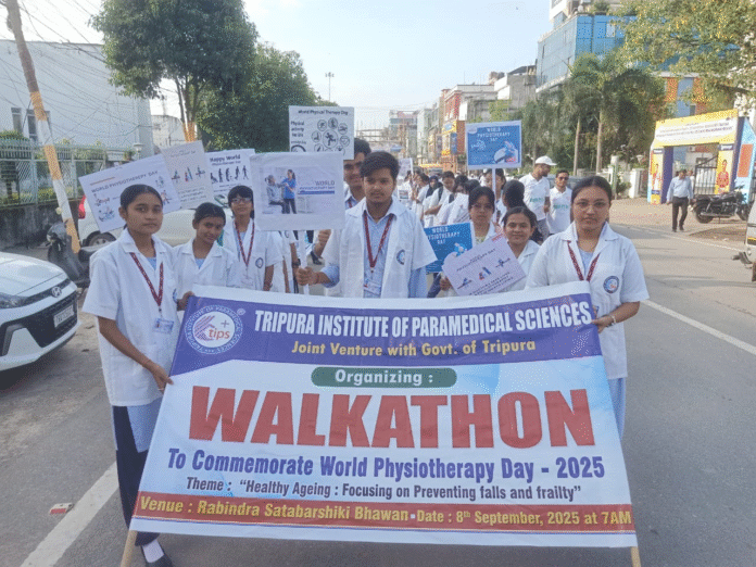স্যন্দন ডিজিটাল ডেস্ক, আগরতলা, ৮ সেপ্টেম্বর : বিশ্ব ফিজিওথেরাপি দিবস উপলক্ষে দ্যা ইন্ডিয়ান এসোসিয়েশন অফ ফিজিওথেরাপিস্ট ত্রিপুরা শাখা ও ত্রিপুরা ইনস্টিটিউট অফ প্যারামেডিকেল সাইন্স যৌথ উদ্যোগে এক শোভাযাত্রা অনুষ্ঠিত হয়। যার মূল উদ্দেশ্য হলো সাধারণ মানুষকে ফিজিওথেরাপি বিষয়ে অবগতি করা এবং মানব জীবনে ফিজিওথেরাপি কেন প্রয়োজন।
