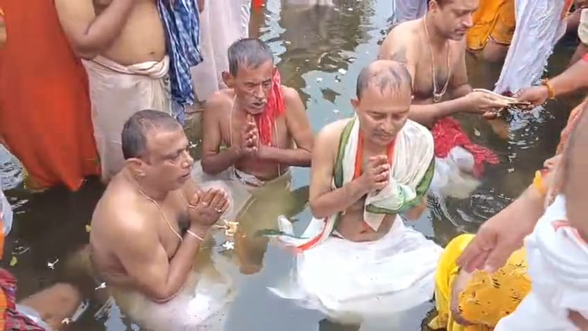 স্যন্দন ডিজিটাল ডেস্ক, আগরতলা, ২১ সেপ্টেম্বর : প্রতিবছরের মতো এ বছরও মহালয়ার সকালে তর্পন করা হয় আগরতলা শহরের বিভিন্ন মন্দির প্রাঙ্গণের পুকুরে। তর্পনের প্রধান উদ্দেশ্য তৃপ্তি দান এবং তৃপ্তি লাভ। উত্তর পুরুষের তর্পনে প্রয়াত পূর্বপুরুষের আত্মা তৃপ্ত হলে ধন, স্বাস্থ্য, আয়ু বৃদ্ধি হয়। বিশ্বাস মেলে শান্তি, সুখ, সমৃদ্ধিও। জানা যায়, ভাদ্র পূর্ণিমার পরবর্তী প্রতিপদ থেকে অমাবস্যা তিথি পর্যন্ত পিতৃপক্ষ।