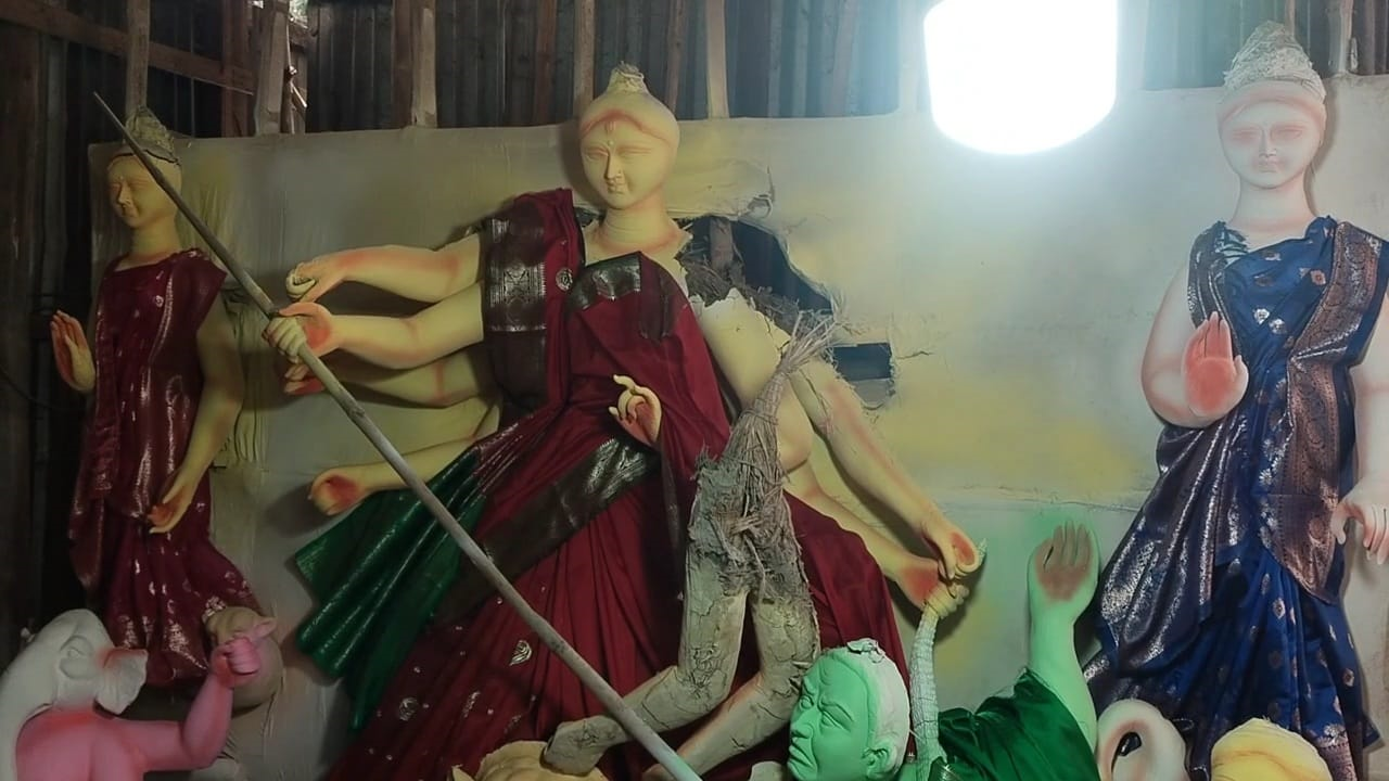 স্যন্দন ডিজিটাল ডেস্ক, আগরতলা, ২৩ সেপ্টেম্বর : দুর্গাপূজার আর মাত্র হাতে চার দিন বাকি। কুমোর পাড়ায় চলছে শেষ তুলির টান। এর আগে দুষ্কৃতিকারীরা থাবা বসালো এক মৃৎ শিল্পীর বাড়িতে। রাতের আধারে দুষ্কৃতিকারীরা ভেঙে দিল দূর্গা মূর্তি। ঘটনা খোয়াই লালছড়া এলাকায়। বুধবার ঘুম থেকে উঠে মৃৎ শিল্পী বিষয়টি প্রত্যক্ষ করেন।