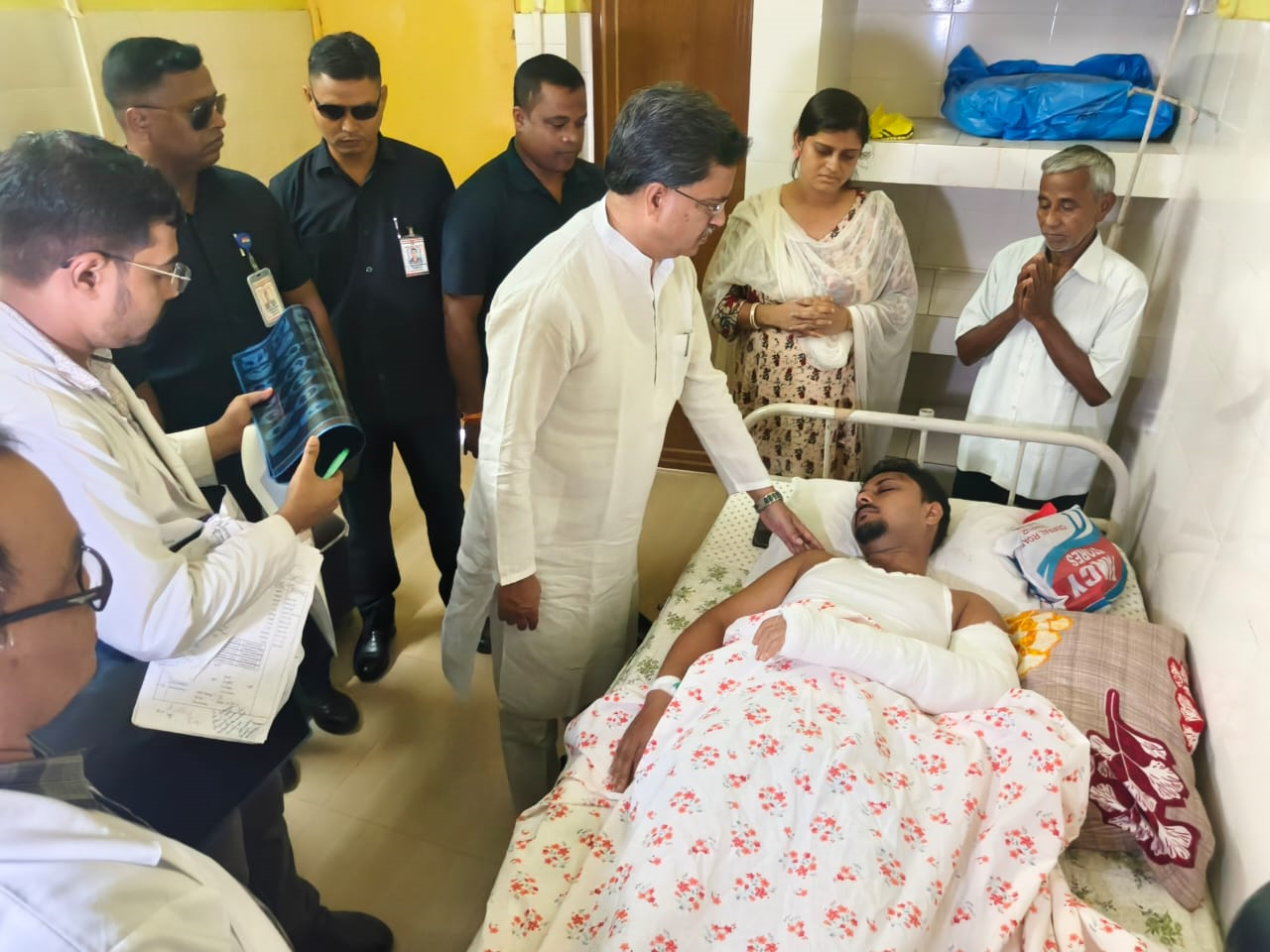 শুক্রবার জিবি হাসপাতালে আহতদের শারীরিক অবস্থার খোঁজখবর নিতে গেলেন মুখ্যমন্ত্রী ডাক্তার মানিক সাহা। আহতদের শারীরিক অবস্থার খোঁজখবর নিয়ে চিকিৎসকদের সঙ্গেও কথা বলেছেন মুখ্যমন্ত্রী। তারপর মুখ্যমন্ত্রী সংবাদ মাধ্যমের মুখোমুখি হয়ে বলেন, শান্তির বাজারে যে ঘটনা সংঘটিত হয়েছে সেটা অবর্ণনীয়। এটা আন্দোলনে নামে একটা কলঙ্ক। কারণ তারা মানুষকে মারধর করার পাশাপাশি মানুষের স্বর্ণের চেইন ছিনতাই করেছে। সুতরাং যে ঘটনাটি শান্তির বাজারে ঘটেছে সেটা নিঃসন্দেহে প্রাণঘাতী হামলা। এটা কেমন রাজনীতি এবং এ ধরনের রাজনীতির অর্থ কি দাঁড়ায় সেটা নিয়ে প্রশ্ন তুললেন মুখ্যমন্ত্রী। যারা এই ঘটনা সংঘটিত করেছে তাদের রাজ্যবাসী মেনে নেবে না।
