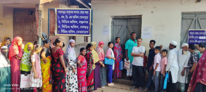 স্যন্দন ডিজিটাল ডেস্ক, আগরতলা। ৩০ অক্টোবর: আধার কার্ডের মেশিন নষ্ট। প্রতিদিন ৩৬ টির বেশি আধার কার্ডের আবেদন জমা নেওয়া হয় না। বৃহস্পতিবার ভোর চারটায় এসে লাইনে দাঁড়িয়েছেন আধার কার্ড করার জন্য। এই দৃশ্য সোনামুড়া অফিস টিলা এলাকার আধার কার্ড করার বিভাগে। জানা যায়, দালাল প্রথা বন্ধ করতে এই নিয়ম চালু করেছিলো মহকুমা শাসক, কয়েক দিন সঠিক পরিষেবা ফেলেও অফিসে কয়েক কম্পিউটার সহ আঁধার অফিসে কিছু সমস্যা থাকায় একটি কম্পিউটার চলছে কাজ।