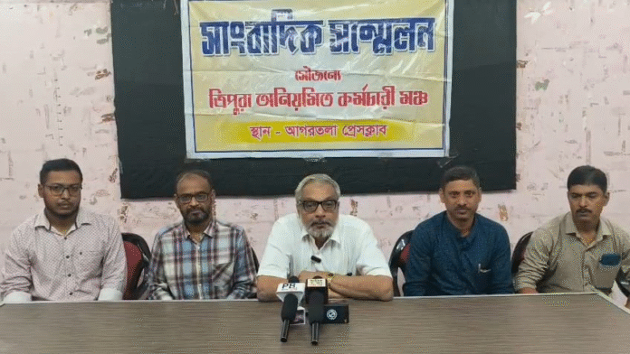 স্যন্দন ডিজিটাল ডেস্ক, আগরতলা। ১৬ নভেম্বর : আন্দোলন কর্মসূচির ঘোষণা দিল ত্রিপুরা অনিয়মিত কর্মচারী মঞ্চ। রবিবার আগরতলা প্রেস ক্লাবে সাংবাদিক সম্মেলন করে সংগঠনের কনভেনার তথা বরিষ্ঠ আইনজীবী পুরুষোত্তম রায় বর্মন বলেন, প্রায় ৪০ হাজার অনিয়মিত কর্মচারীদের নিয়মিত করণের দাবি সহ একাধিক দাবিকে সামনে রেখে আন্দোলন চালিয়ে আসছে ত্রিপুরা অনিয়মিত কর্মচারী মঞ্চ ত্রিপুরা রাজ্য কমিটি। এই দাবি গুলিকে সামনে রেখে ৪ জুলাই মহাকরণ অভিযান করে ত্রিপুরা অনিয়মিত কর্মচারী মঞ্চ।