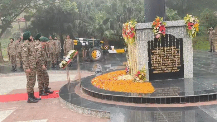 রাজ্য পুলিশের মহা নির্দেশক জানান বিজয় দিবস উপলক্ষে ত্রিপুরা থেকে মিছিল শুরু করছে জওয়ানেরা। তারা বিভিন্ন জায়গায় যাবে। ভারত স্বাধীন হওয়ার পেছনে তাঁদের মুখ্য ভূমিকা ছিল। তাই আজকের দিনে তাদের অভিনন্দন জানান। পাশাপাশি শহীদদের স্মরণ করা হয়।