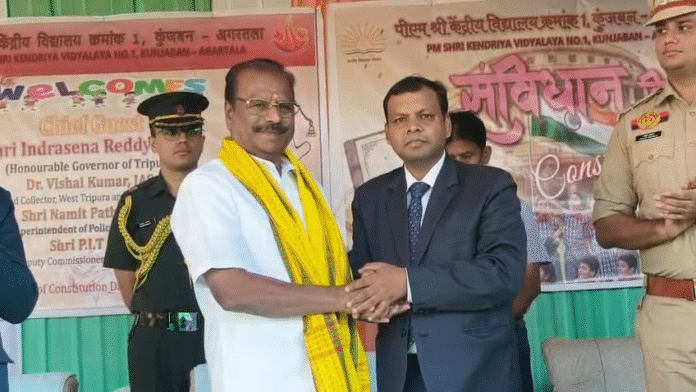স্যন্দন ডিজিটাল ডেস্ক, আগরতলা। ২৬ নভেম্বর : বুধবার এক অনুষ্ঠানের মধ্যে দিয়ে রাজধানীর কুঞ্জবন স্থিত পিএম কেন্দ্রীয় বিদ্যালয় সংবিধান দিবস অনুষ্ঠিত হয়। অনুষ্ঠানের প্রধান অতিথি হিসেবে উপস্থিত ছিলেন রাজ্যপাল ইন্দ্র সেনা রেড্ডি নাল্লু, পশ্চিম জেলার পুলিশ সুপার নমিত পাঠক, অতিরিক্ত জেলা শাসক, পিএম কেন্দ্রীয় বিদ্যালয় শিলচর ডিভিশনের ডেপুটি কমিশনার পি আই টি রাজা সহ অন্যান্যরা।