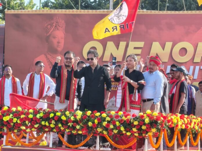 আগে যারা বলতো মুকুটহীন রাজা, বাটপার, দালাল-তুমি পাহাড়ি মানুষ, কি করতে পারবে? দিল্লি গেলেও বলতো পিংকু, চাইনিজ, মোমু- আজ তারা দেখে নাও পুরো উত্তর পূর্বাঞ্চল এক হয়েছে। আগে জনজাতিদের মধ্যে থানসা ছিল না। যার কারণে জাতিদের সব ক্ষেত্রে আলাদা করে দেওয়া হয়েছিল। আজ অর্থ না থাকলেও তিপ্রাসাদের সঙ্গে আছে গোটা উত্তর পূর্বাঞ্চল। আরো বলেন, আমরা আমাদের জমিতেই শেষ হয়ে গেছি এবং গরিব হয়ে গেছি। কিন্তু পরিবর্তন করতে হবে। আবার তিনিই মঞ্চ থেকে প্রাক্তন জঙ্গি নেতা বিজয় রাঙ্খল সহ কয়েকজনের নাম উল্লেখ করে দুঃখ প্রকাশ করে বললেন, তারা জাতির জন্য লড়াই করেছে।