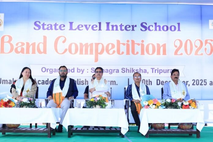 স্যন্দন ডিজিটাল ডেস্ক, আগরতলা। ১০ ডিসেম্বর : বুধবার রাজধানীর উমাকান্ত স্কুল ময়দানে রাজ্য স্তরের আন্তঃস্কুল ব্যান্ড প্রতিযোগিতা ২০২৫ অনুষ্ঠিত হয়। অনুষ্ঠানে প্রধান অতিথি হিসাবে উপস্থিত ছিলেন রাজ্যের মুখ্যমন্ত্রী ডাক্তার মানিক সাহা। অনুষ্ঠানে বক্তব্য রাখতে গিয়ে মুখ্যমন্ত্রী বলেন খেলাধুলার একটি পার্ট হল ব্যান্ড। ব্যান্ড প্রতিযোগিতায় রাজ্যের ছেলে মেয়েরা জাতীয় স্তরে অংশগ্রহণ করে ভালো ফলাফল করেছে। এইটা গর্বের বিষয়। ব্যান্ড প্রতিযোগিতাকে কেন্দ্র করে ছেলে মেয়েদের মধ্যে ব্যাপক উৎসাহ পরিলক্ষিত হচ্ছে। ব্যান্ড বাজানো কিংবা শিখা সহজ নয়।