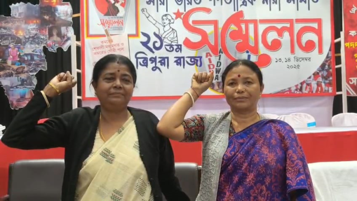 স্যন্দন ডিজিটাল ডেস্ক, আগরতলা। ১৪ ডিসেম্বর : শনিবার শুরু হয় সারা ভারত গণতান্ত্রিক নারী সমিতির ২১ তম রাজ্য সম্মেলন। রাজধানীর ওরিয়েন্ট চৌমুহনীতে প্রকাশ্য সমাবেশের মধ্যদিয়ে সম্মেলন শুরু হওয়ার কথা থাকলেও প্রশাসন অনুমতি প্রদান করে নি। বাধ্য হয়ে আগরতলা টাউন হল প্রাঙ্গণে প্রকাশ্য সমাবেশের মধ্যদিয়ে সম্মেলন শুরু হয়। দুইদিন ব্যাপী এই সম্মেলনে সাংগঠনিক, রাজনৈতিক পরিস্থিতি সহ একাধিক বিষয় নিয়ে চুলচেরা আলোচনা হয়। একই সাথে সংগঠনের আগামিদিনের কর্মসূচীর রূপরেখা কি হবে সেই বিষয় নিয়েও সম্মেলনে আলোচনা হয়। দুইদিন ব্যাপী চলে এই সম্মেলন। রবিবার বিকালে সমাপ্ত হয় এই সম্মেলন।