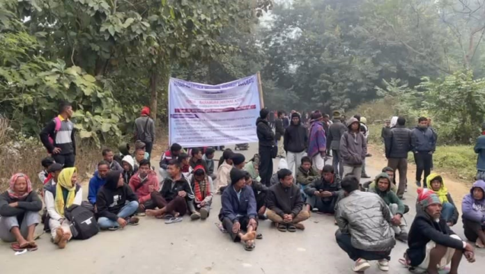 জাতীয় সড়ক অবরোধ করল আত্মসমর্পণকারী বৈরী সংগঠন