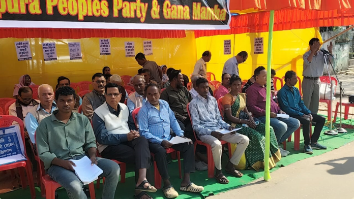যাদেরকে শ্রম দাস বানিয়ে বড় বড় কর্পোরেট ও সুবিধাভোগী জাত ও শ্রেণির চরম আধিপত্য কায়েম রাখা যাবে। উদ্ভুত এই পরিস্থিতির মধ্যেই নরেন্দ্র মোদির নেতৃত্বে বর্তমান কেন্দ্রীয় সরকার লগ্নি পুঁজির স্বার্থে দেশে শ্রমিক বিরোধী সর্বনাশা শ্রম কোড চালু করেছে। যার মাধ্যমে স্বাধীনতার পর থেকে দীর্ঘ লড়াইয়ের মাধ্যমে অর্জিত অধিকারগুলোকে খর্ব করে শ্রমিকদেরকে শ্রমদাসে পরিনত করার ষড়যন্ত্র পাকা করে নিয়েছে। তাছাড়া গোটা দেশব্যাপী শ্রমিক শোষন বাড়িয়ে কর্পোরেট মুনাফাকে সর্বোচ্চ স্তরে নিয়ে যাওয়ার কপটতাও নিহিত রয়েছে এই শ্রম কোডে। যেখানে শ্রমিকদের ট্রেডইউনিয়ন করা এবং ধর্মঘট করার অধিকারকেও রীতিমতো চ্যালেঞ্জ করা হয়েছে। অর্থাৎ শ্রম কোড চালু করে শ্রমিকদের কথা বলার ন্যূনতম অধিকারকেও কেড়ে নেওয়া হলো। ফলে মজুরি নির্ধারন কিংবা কাজের সময় ও নির্ঘণ্ট নিয়ে দরকষাকষি করার ন্যূনতম অধিকারও শ্রমিকদের থাকবে না। একই লক্ষ্যে মোদী সরকার কৃষক সহ সাধারণ মানুষের স্বার্থ বিরোধী কৃষি বীজ ও বিদ্যুৎ বিল এনেছে। ত্রিপুরা পিপলস পার্টি ও গণ মঞ্চ সাম্প্রদায়িক ফ্যাসিবাদি দেশী-বিদেশী কর্পোরেট কম্পানীগুলির তল্পিবাহক কেন্দ্র-রাজ্যের বিজেপি সরকারের জনবিরোধী শ্রমিক বিরোধী এস আই আর, শ্রম কোড বাতিল সহ বিভিন্ন দাবিতে ধারাবাহিক আন্দোলনের সিদ্ধান্ত গ্রহণ করেছে। এই লক্ষ্যে আগামী ২২শে ডিসেম্বর, ২৫ ডিসেম্বর পর্যন্ত বেলা ১১টা থেকে ৩টা পর্যন্ত রবীন্দ্র শতবার্ষিকী ভবন প্রাঙ্গণে গণঅবস্থান পালন করবে। এই গণ অবস্থানে সকলকে এগিয়ে আসার জন্য আহ্বান জানান ত্রিপুরা পিপলস পার্টির নেতৃত্ব প্রবীন সিং।