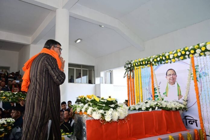 স্যন্দন ডিজিটাল ডেস্ক, আগরতলা। ২৭ ডিসেম্বর : বৃহস্পতিবার রাত সাড়ে তিনটা নাগাদ ব্যাঙ্গালোর বেসরকারি হাসপাতালে প্রয়াত হয়েছেন ত্রিপুরা বিধানসভার অধ্যক্ষ বিশ্ববন্ধু সেন। শনিবার তাঁর মরদেহ নিয়ে আসা হয় ব্যাঙ্গালোর থেকে আগরতলা বিমানবন্দরে। বিমানবন্দর থেকে মরদেহ নিয়ে আসা হয় বিধানসভায়। সেখানে উপস্থিত ছিলেন রাজ্যপাল ইন্দ্র সেনা রেড্ডি নাল্লু, মুখ্যমন্ত্রী ডাঃ মানিক সাহা, বিরোধী দলনেতা জিতেন্দ্র চৌধুরী সহ বিধানসভার বিধায়করা। মরদেহ পুষ্পার্ঘ্য অর্পণ করে সকলে অন্তিম শ্রদ্ধা জানিয়ে শোক প্রকাশ করেন।