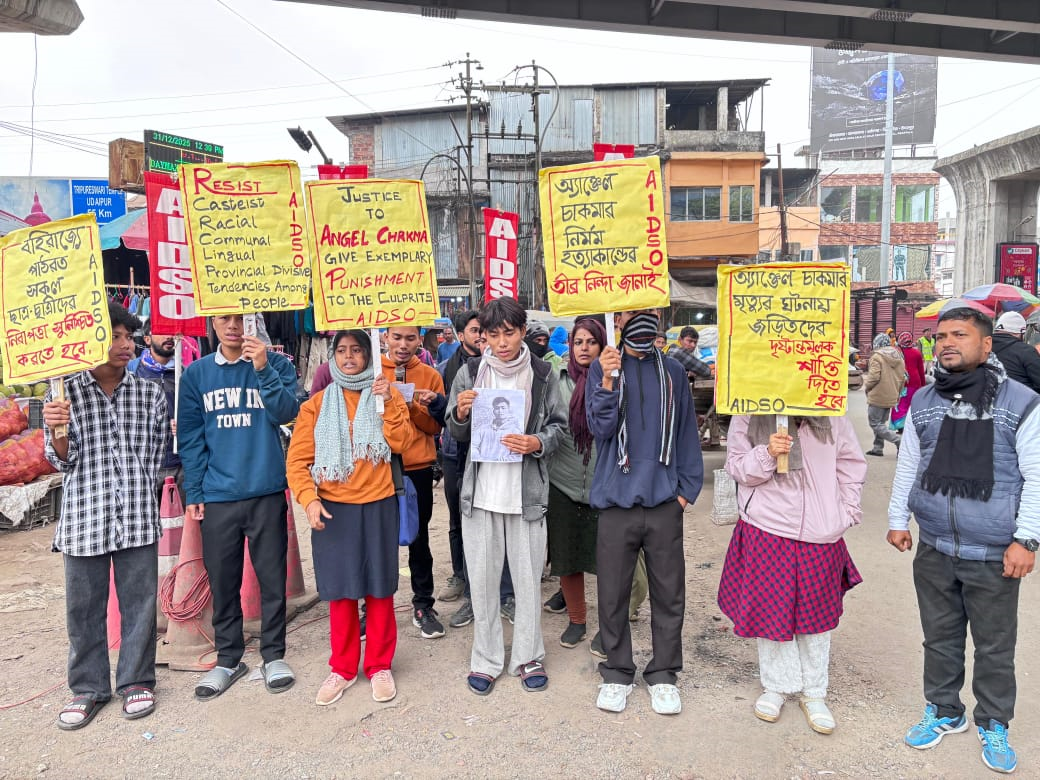 এইবার এঞ্জেল চকমার হত্যার ঘটনার সাথে জড়িতদের দৃষ্টান্ত মূলক শাস্তির দাবিতে সরব হল এ.আই.ডি.এস.ও। এআইডিএসও-র পক্ষ থেকে বুধবার রাজধানীর বটতলা এলাকায় বিক্ষোভ প্রদর্শন করা হয় হাতে প্ল্যাকার্ড নিয়ে। এই বিক্ষোভ কর্মসূচী থেকে দাবি জানানো হয় এঞ্জেল চাকমার হত্যার সাথে যারা জড়িত তাদেরকে দৃষ্টান্ত মূলক শাস্তি প্রদান করা হোক।