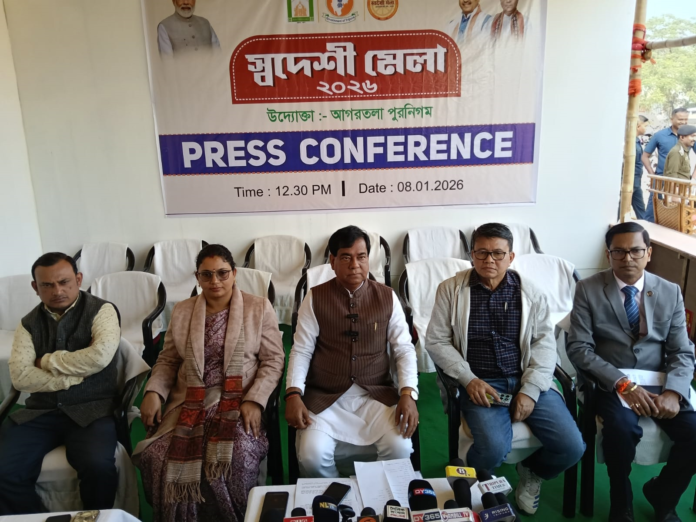 স্যন্দন ডিজিটাল ডেস্ক, আগরতলা। ৮ জানুয়ারি : স্বদেশী মেলা নিয়ে বৃহস্পতিবার সাংবাদিক সম্মেলন করলেন মেয়র দীপক মজুমদার। স্বামী বিবেকানন্দ ময়দানে আয়োজিত সাংবাদিক সম্মেলনে মেয়র দীপক মজুমদার জানান আগরতলা পুর নিগমের উদ্যোগে প্রথম বারের মতো তিন দিন ব্যাপী স্বদেশী মেলার আয়োজন করা হয়েছে। ৯ থেকে ১১ জানুয়ারি অনুষ্ঠিত হবে স্বদেশী মেলা।