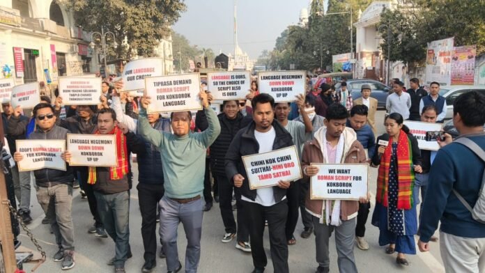 বাড়িরাজ্যককবরক দিবসে শহরে বিক্ষোভ মিছিল