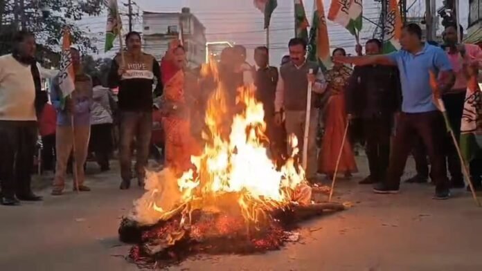 স্যন্দন ডিজিটাল ডেস্ক, আগরতলা। ২১ জানুয়ারি :জগৎগুরু শংকরাচার্য ও সাধু সন্ন্যাসীদের উপর উত্তরপ্রদেশের পুলিশ প্রশাসন যে আক্রমণ সংঘটিত করেছে তারই প্রতিবাদে ত্রিপুরা প্রদেশ কংগ্রেস দলের পক্ষ থেকে ধিক্কার ও বিক্ষোভ মিছিল প্রদর্শন করা হয় বুধবার। আগরতলা ওরিয়েন্ট চৌমুহনি এলাকায় উত্তরপ্রদেশের মুখ্যমন্ত্রী যোগী আদিত্যনাথ এবং প্রধানমন্ত্রীর নরেন্দ্র মোদির কুশপুত্তলিকা পুড়ানো হয়। উপস্থিত ছিলেন বিধায়ক সুদীপ রায় বর্মন।
