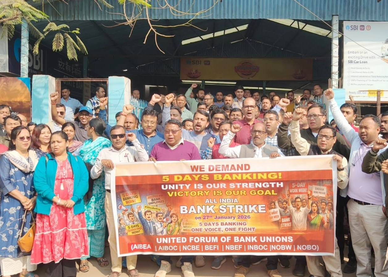 স্যন্দন ডিজিটাল ডেস্ক, আগরতলা। ২৭ জানুয়ারি: মঙ্গলবার দেশ জুড়ে ব্যাঙ্ক ধর্মঘট। ইউনাইটেড ফোরাম অফ ব্যাঙ্ক ইউনিয়নস -সহ একাধিক সংগঠন এই ধর্মঘটের ডাক দিয়েছে। সপ্তাহে পাঁচ দিন কাজের দাবিতে এই ধর্মঘট ডাকা হয়েছে। এর জেরে মঙ্গলবার দেশের সঙ্গে রাজ্যে ও বিভিন্ন রাষ্ট্রায়ত্ত ব্যাঙ্ক বন্ধ ছিল। তবে দেশের বেসরকারি ব্যাঙ্কগুলিতে এই ধর্মঘটের প্রভাব নাও পড়তে পারে বলে মনে করা হচ্ছে।