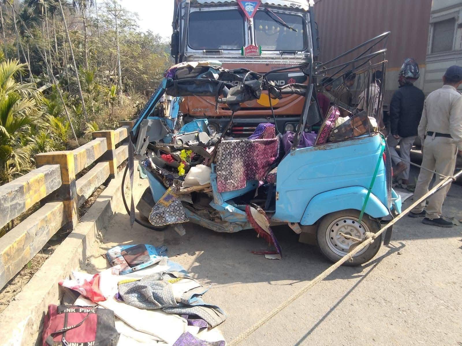 এতে নিহত হয় অটো চালক ভাস্কর গোস্বামী, বয়স ৪৫, বাড়ি উত্তর পাবিয়াছড়া। বাকি নিহতরা হলেন কাঞ্চনা চাকমা, বয়স ৫৫ বছর, বাড়ি মাছলি শিববাড়ি শরৎকার এলাকায়, হরিশংকর দেবতাতা, বয়স ৫২ বছর, বাড়ি মাছলি এলাকায় এবং গরিমিলি চাকমা, বাড়ি মাছলি এলাকায়। আহতরা হলেন যাত্রাপথী চাকমা, বাড়ি মাছলি এলাকায়, মায়ারানি দেবনাথ, বাড়ি পেঁচারতলে। তাদের কৈলাসহর জেলা হাসপাতাল থেকে প্রাথমিক চিকিৎসার পর বহিঃরাজ্যের শিলচরে স্থানান্তর করেন চিকিৎসক।এই ঘটনায় লরি চালক পালিয়ে যায়। এদিকে কুমারঘাট থানার পুলিশ ঘটনার তদন্ত শুরু করেছে।