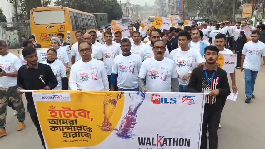 স্যন্দন ডিজিটাল ডেস্ক, আগরতলা। ৪ ফেব্রুয়ারি :সমগ্র দেশের সাথে রাজ্যেও পালন করা হয় বিশ্ব ক্যান্সার দিবস। বিশ্ব ক্যান্সার দিবস উপলক্ষ্যে বুধবার আগরতলা শহরে এক পদযাত্রা সংগঠিত করা হয়। আইএলএস হাসপাতালের পক্ষ থেকে এই পদযাত্রার আয়োজন করা হয়। রাজধানীর রবীন্দ্র শতবার্ষিকী ভবনের সামনে থেকে শুরু হয় এই পদযাত্রা। মূলত মানুষকে ক্যান্সার রোগ ও তার চিকিৎসার বিষয়ে সচেতন করতে এই পদযাত্রার আয়োজন করা হয়।