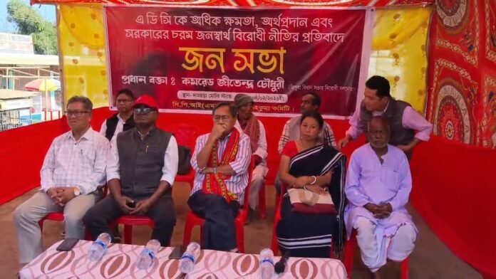 স্যন্দন ডিজিটাল ডেস্ক, আগরতলা। ৪ ফেব্রুয়ারি :বুধবার দামছড়া মোটর স্ট্যান্ডে সিপিআইএম-এর উদ্যোগে এক জনসভা অনুষ্ঠিত হয়। এই জনসভায় প্রধান বক্তা হিসাবে উপস্থিত ছিলেন সিপিআইএম-এর রাজ্য কমিটির সম্পাদক জিতেন্দ্র চৌধুরী। সভায় সভাপতিত্ব করেন কৃষিরুং রিয়াং ও ধীরেন্দ্র দাস। উপস্থিত ছিলেন প্রাক্তন এমডিসি রাজেন্দ্র রিয়াং, সিপিআইএম পানিসাগর মহকুমা সম্পাদক অজিত দাস, সিপিআইএম রাজ্য সম্পাদক মণ্ডলীর সদস্য অমিতাভ দত্ত সহ অন্যান্যরা।