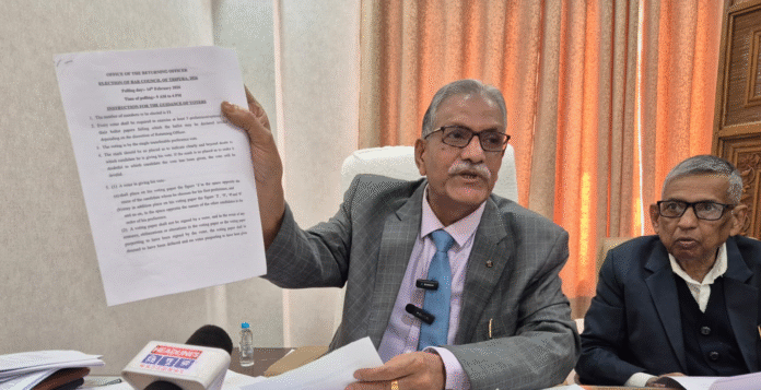 স্যন্দন ডিজিটাল ডেস্ক, আগরতলা। ১১ ফেব্রুয়ারি : ১৪ ফেব্রুয়ারি ত্রিপুরা বার কাউন্সিলের নির্বাচন অনুষ্ঠিত হবে। এই নির্বাচনকে সামনে রেখে বুধবার সাংবাদিক সম্মেলন করেন নির্বাচনের রিটার্নিং অফিসার তথা উচ্চ আদালতের অবসরপ্রাপ্ত বিচারপতি এসসি দাস। সাংবাদিক সম্মেলনে তিনি জানান ত্রিপুরা রাজ্যে নিয়ম অনুযায়ী বার কাউন্সিলের সদস্য সংখ্যা ১৫ জন। এই ১৫ জন সদস্য নির্বাচনের জন্য ১৪ ফেব্রুয়ারি নির্বাচন অনুষ্ঠিত হবে।