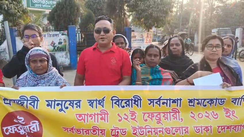 স্যন্দন ডিজিটাল ডেস্ক, আগরতলা। ১১ ফেব্রুয়ারি : ১২ ফেব্রুয়ারি সর্বভারতীয় সাধারণ ধর্মঘটে সামিল হবে ত্রিপুরা রাজ্য আই.এন.টি.ইউ.সি। বুধবার আইএনটিইউসি অফিসে সাংবাদিক সম্মেলনে করে এই বিষয়ে জানান সংগঠনের রাজ্য সভাপতি বিপ্লব কুমার রায় ও সাধারণ সম্পাদক স্বপন দে। তারা আরও জানান কেন্দ্রীয় সরকারের শ্রমিক বিরোধী, কৃষক বিরোধী ও দেশবিরোধী কর্পোরেটপন্থী নীতির বিরুদ্ধে প্রতিবাদ জানিয়ে ১২ ফেব্রুয়ারি সর্বভারতীয় সাধারণ ধর্মঘটে তারাও সামিল হবেন। একই সাথে তারা সকলকে এই ধর্মঘটে সামিল হওয়ার আহ্বান জানান।