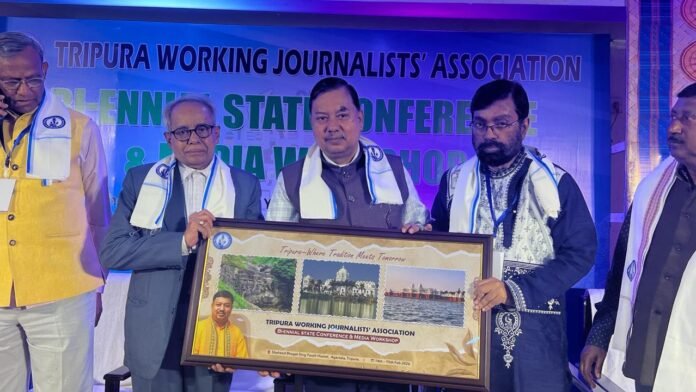 স্যন্দন ডিজিটাল ডেস্ক, আগরতলা। ১৫ ফেব্রুয়ারি : রবিবার শহীদ ভগৎ সিং যুব আবাসে ত্রিপুরা ওয়ার্কিং জার্নালিস্টস এসোসিয়েশনের উদ্যোগে আয়োজিত দ্বিবার্ষিক রাজ্য সম্মেলন ও মিডিয়া ওয়ার্কশপে দ্বিতীয় দিন ছিল। অনুষ্ঠানের প্রধান অতিথি হিসেবে উপস্থিত ছিলেন ত্রিপুরা বিধানসভায় উপাধ্যক্ষ রামপ্রসাদ পাল এবং বিশেষ অতিথি হিসেবে উপস্হিতি ছিলেন স্যন্দন টিভি এবং স্যন্দন পত্রিকার সম্পাদক সুবল কুমার দে। উপাধ্যক্ষ রামপ্রসাদ পাল বক্তব্য রেখে বলেন,