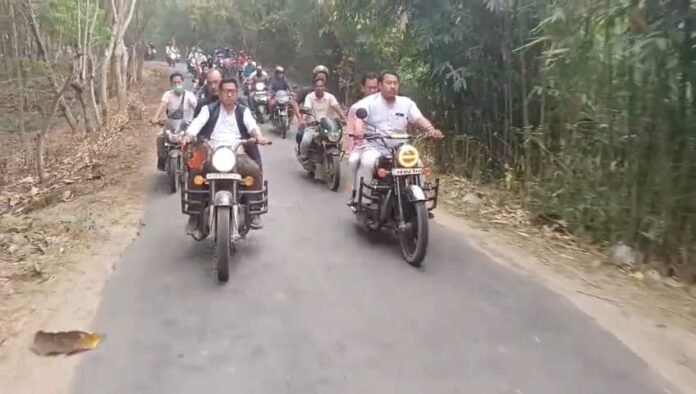 স্যন্দন ডিজিটাল ডেস্ক, আগরতলা। ৩ মার্চ :মঙ্গলবার মোহনপুর বিধানসভা কেন্দ্রের অবিচরণ স্কুল প্রাঙ্গণ থেকে সুবিশাল বাইক মিছিলের আয়োজন করা হয়। টিটিএএডিসি নির্বাচনকে কেন্দ্র করে এই বাইক মিছিলের আয়োজন করা হয়। উপস্থিত ছিলেন প্রাক্তন সাংসদ রেবতী ত্রিপুরা, প্রদেশ সাধারণ সম্পাদক বিপিন দেববর্মা সহ অন্যান্যরা। প্রাক্তন সাংসদ রেবতী ত্রিপুরা বলেন, যুবকরা হল মূল শক্তি। এডিসি-তে শান্তি এবং উন্নয়ন দুটিই প্রয়োজন।