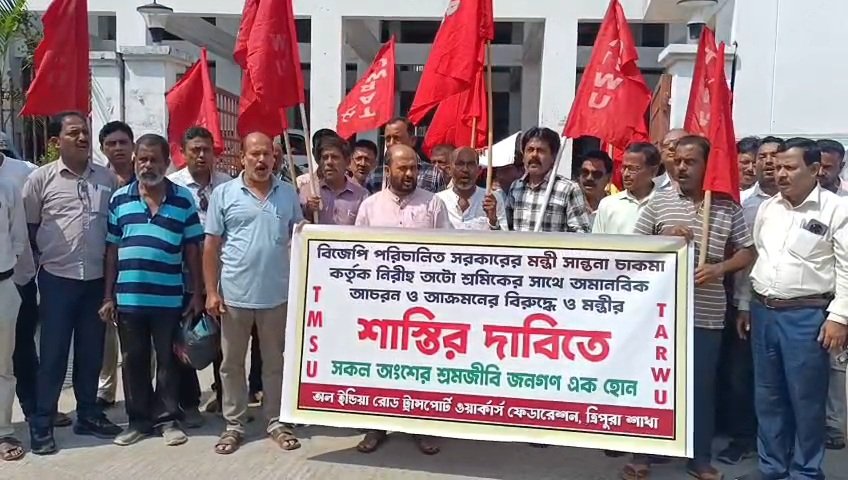 উপস্থিত সংগঠনের নেতৃত্ব অমল চক্রবর্তী বলেন, পেঁচারথলে মন্ত্রী সান্তনা চাকমা শারীরিক আক্রমণ সংগঠিত করে এক অটো চালকের উপর। এটা রাজ্যের জন্য অত্যন্ত লজ্জার। এর আগে এমন হয়েছে বলে জানা নেই। এ ধরনের ঘটনার জন্য অবিলম্বে মন্ত্রী সান্তনা চাকমার বিরুদ্ধে কড়া পদক্ষেপ গ্রহণ করতে হবে। মন্ত্রী তাঁর নিজের প্রটোকল না মেনে এ ধরনের নিন্দা জনক ঘটনা সংগঠিত করা কোনোভাবেই গ্রহণযোগ্য নয়। বিষয়টি শ্রম দপ্তরের কমিশনারের দৃষ্টি আকর্ষণ করে ব্যবস্থা নেওয়ার জন্য দাবি করা হচ্ছে। পাশাপাশি মুখ্যমন্ত্রীর দৃষ্টি আকর্ষণ করে অবিলম্বে মন্ত্রিসভা থেকে সান্তনা চাকমাকে বরখাস্ত করার জন্য দাবী করছে অল ইন্ডিয়া রোড ট্রান্সপোর্ট ওয়ার্কার্স ফেডারেশন ত্রিপুরা শাখা। আরো বলেন একজন মন্ত্রীর এই ধরনের আচরণ যাতে গোটা রাজ্যবাসীর নজরে আসে এবং ধিক্কার জানায়, তার জন্য দাবি করা হচ্ছে।