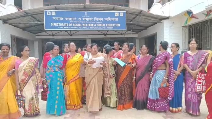 স্যন্দন ডিজিটাল ডেস্ক, আগরতলা। ২২ এপ্রিল : বুধবার রাজধানীর উজান অভয়নগর স্থিত সমাজ কল্যাণ ও সমাজ শিক্ষা দপ্তরে গিয়ে নিজেদের দাবি-দাওয়া নিয়ে বিক্ষোভে সামিল হয় অঙ্গনওয়াড়ি কর্মী সহায়িকারা। তাদের অভিযোগ, সরকার উচ্চ আদালতের রায় কার্যকর করছে না। যার ফলে তারা বছরের পর বছর ন্যায্য অধিকার থেকে বঞ্চিত।