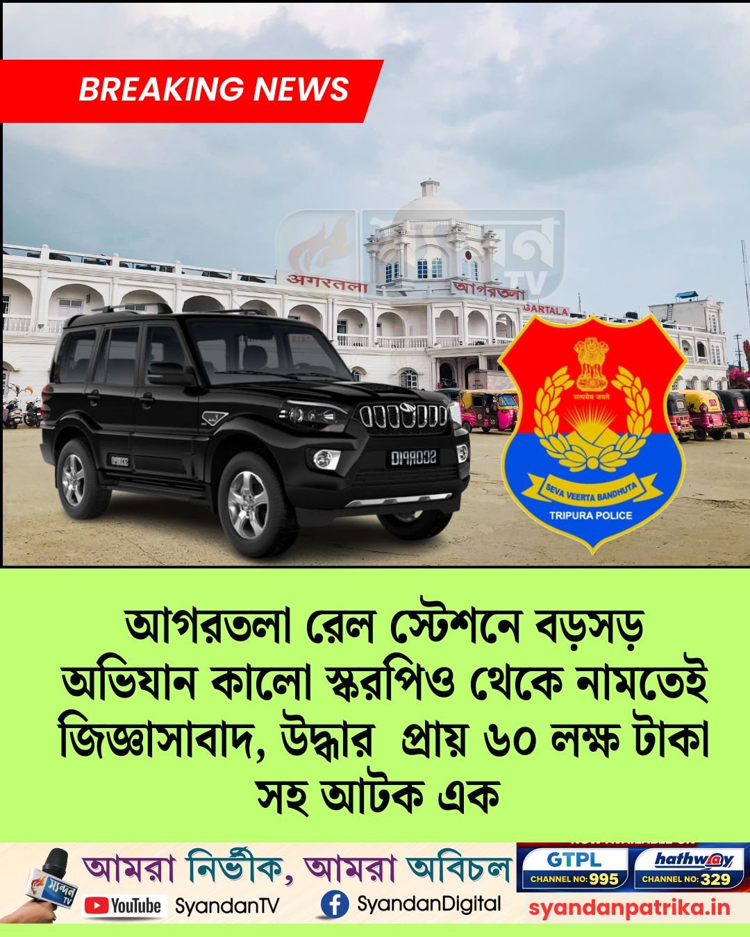 আগরতলা রেল স্টেশনে বড়সড় অভিযান কালো স্করপিও থেকে নামতেই জিজ্ঞাসাবাদ, উদ্ধার প্রায় ৬০ লক্ষ টাকা সহ এক ব্যক্তি আটক