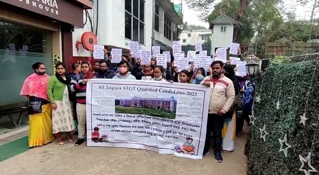 নতুন করে একটি নিয়োগের ফাইল অর্থ দপ্তরে পাঠানোর নির্দেশ দেন শিক্ষামন্ত্রী। সেই মোতাবেক বুধবার উপমুখ্যমন্ত্রী তথা অর্থমন্ত্রী যীষ্ণু দেববর্মার বাসভবনে যায় এস টি জি টি পরীক্ষার্থীরা। তাদের বক্তব্য সময় কম। শিক্ষা দপ্তর থেকে নোটিফিকেশন জারি করলে তবেই টি আর বি টি তাদের ফলাফল প্রকাশ করবে। ফলাফল প্রকাশের পর তাদের ভেরিফিকেশন ও স্ক্রুটি রয়ে গেছে। এরপর প্রকাশিত হবে তালিকা। এই কাজগুলি সম্পন্ন করার সময় আর নেই। কিন্তু কোন সদুত্তর না পেলে দুদিনের সময়সীমা বেঁধে দিয়ে আন্দোলনে নামার ঘোষণা দেয় এসটিজিটি পরীক্ষার্থীরা। তবে বিশ্বস্ত সূত্রে খবর এস টি জি টি জন্য ত্রিপুরার প্রায় দশ হাজারের অধিক চাকরি প্রত্যাশী যুবক-যুবতী পরীক্ষার আবেদন করেছিল। এরমধ্যে ৯,২২১ জন পরীক্ষায় বসে। শূন্য পদের সংখ্যা ছিল ২৩০ টি। সরকার যদি চায় তাহলে বিজ্ঞপ্তির বহির্ভূত একজনও নিয়োগ করতে পারবে না। প্রয়োজনে নিয়োগ প্রক্রিয়াটি বাতিল করে পুনরায় বিজ্ঞপ্তি জারি করে পরীক্ষা গ্রহণ করে শূন্যপদ করতে হবে। এখন দেখার বিষয়, নিয়োগ প্রক্রিয়া নিয়ে সরকার এবং চাকুরি প্রত্যাশী যুবক-যুবতীদের মধ্যে কিভাবে বিষয়টি স্থির হয়।