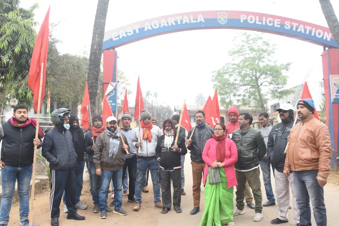 স্যন্দন ডিজিটাল ডেস্ক। আগরতলা। ৭ জানুয়ারি : প্রাক্তন মুখ্যমন্ত্রীর বিধানসভা কেন্দ্রে রাজ্যের প্রধান বিরোধী দলের প্রচার সজ্জা নষ্ট করল দুর্বৃত্তরা। এর প্রতিবাদে পূর্ব আগরতলা থানা ঘেরাও করল সি পি আই এম। দাবি তুলে অভিযুক্তদের গ্রেফতার করার জন্য।