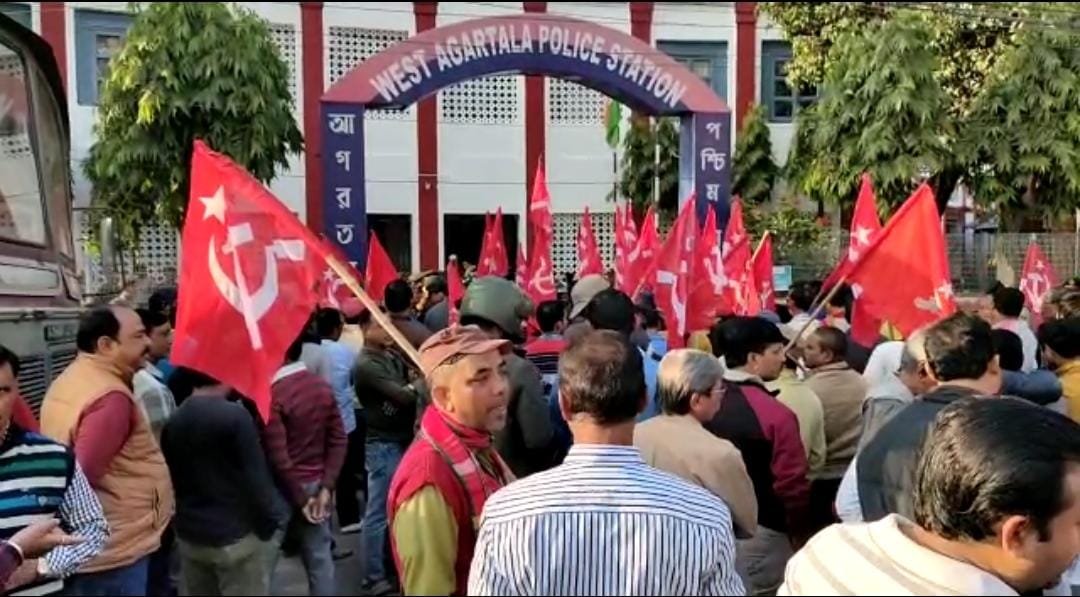 গত ৫৮ মাসে সংবিধান পর্যন্ত অচল হয়ে পড়েছে। যতগুলি নির্বাচন সংগঠিত হয়েছে সবগুলি প্রহসনে পরিণত হয়েছে। মানুষ তার গণতান্ত্রিক অধিকার পর্যন্ত প্রয়োগ করতে পারেনি। এখন আসন্ন বিধানসভা নির্বাচনকে সামনে রেখে যখন আবার সিপিআইএম নির্বাচনি কাজ করতে শুরু করেছে তখন আবারো বাধার সম্মুখীন হচ্ছে। মঙ্গলবার দুপুরে যখন দশমী ঘাট এলাকায় দলীয় পতাকা রাস্তার পাশে লাগানো হয়েছিল তখন শাসক দলের দুর্বৃত্তরা এসে বাধা দেয়। শাসক দলের দুর্বৃত্তকে বক্তব্য এখানে কোন দলীয় পতাকা লাগানো যাবে না। তারপরেও সিপিআইএম কর্মীরা যখন দলীয় পতাকা লাগায় তখন শাসক দলের দুর্বৃত্তরা বিভিন্ন জায়গা থেকে বাইক বাহিনী এনে জুড়ো করে সিপিআইএম কর্মী সমর্থকদের মারধর করে। ঘটনায় আহত হয় দু তিনজন। এর তীব্র প্রতিবাদ জানিয়ে বলেন বিজেপি জনবিশ্বাস রথযাত্রা শুরু করলেও তাদের মানুষের প্রতি বিশ্বাস নেই। তাই এ ধরনের আক্রমণ সংগঠিত করছে। বিজেপি’র আক্রমণ শেষ কথা হবে না, আসন্ন বিধানসভা নির্বাচন অবাধ সুষ্ঠু শান্তিপূর্ণ করতে হবে। আজকে এই ঘটনার প্রতিবাদে পশ্চিম থানা ঘেরাও করে দাবি জানানো হয়েছে পুলিশ প্রশাসনকে ভোটের পরিবেশ সৃষ্টি করতে হবে। বিশেষ করে প্রত্যেকটি রাজনৈতিক দল যাতে তাদের আদর্শকে সামনে রেখে লড়াই করতে পারে সেই ব্যবস্থা পুলিশকে করতে হবে। পাশাপাশি তারা আরও জানান পুলিশ প্রশাসনের দুর্বলতা মেনে নেওয়া হবে না আসন্ন নির্বাচনে। এবং বাইক বাহিনী যদি ভাবে হুমকি এবং সন্ত্রাস করে সিপিআইএমের লড়াই রুখে দেবে তাহলে ভুল ভাবছে। ভয়ের পরিবেশ দিয়ে বিজেপি জয়ী হবে না। বিধানসভা নির্বাচনে রাজ্যের মানুষ জয়ী হবে বলে জানান তারা। দীর্ঘক্ষণ চলে থানা ঘেরাও। পরে পুলিশের হস্তক্ষেপে পরিস্থিতি নিয়ন্ত্রণে আসে।