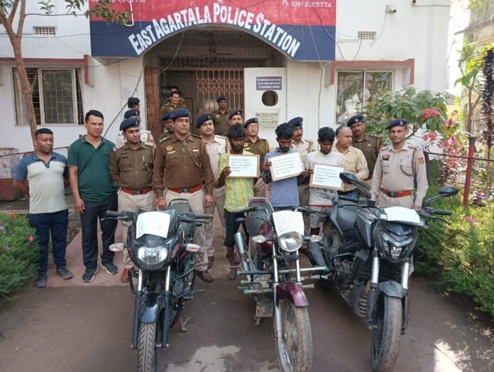 স্যন্দন ডিজিটাল ডেস্ক। আগরতলা। ২৯ ডিসেম্বর : রাজধানীর গেদু মিঞা মসজিদের সামনে থেকে গত ২৪ ডিসেম্বর শেখর চৌধুরী নামে এক ব্যক্তির বাইক চুরি হয়। পূর্ব আগরতলা থানায় মামলা হওয়ার পর পুলিশ তদন্তে নেমে তিনজনকে গ্রেপ্তার করল পুলিশ। ধৃতদের নাম রঞ্জিত সরকার, রুবেল সরকার এবং শনি সাহা।
