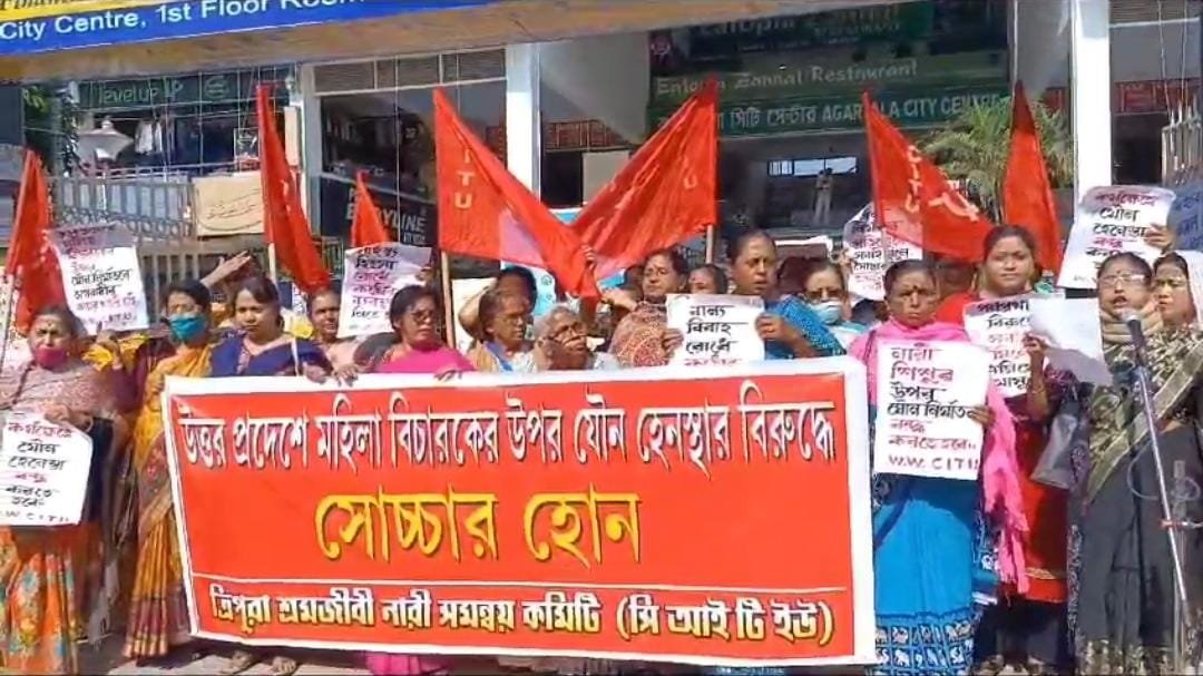 স্যন্দন ডিজিটাল ডেস্ক। আগরতলা। ৩০ ডিসেম্বর: উত্তর প্রদেশে মহিলা বিচারকের উপর যৌন হেনস্থার প্রতিবাদ জানিয়ে রাজধানীতে বিক্ষোভ প্রদর্শন করে সিআইটিইউ অনুমোদিত ত্রিপুরা শ্রমজীবী নারী সমন্বয় কমিটি। এইদিন রাজধানীর সিটি সেন্টারের সামনে এই বিক্ষোভ কর্মসূচি সংগঠিত করা হয়।