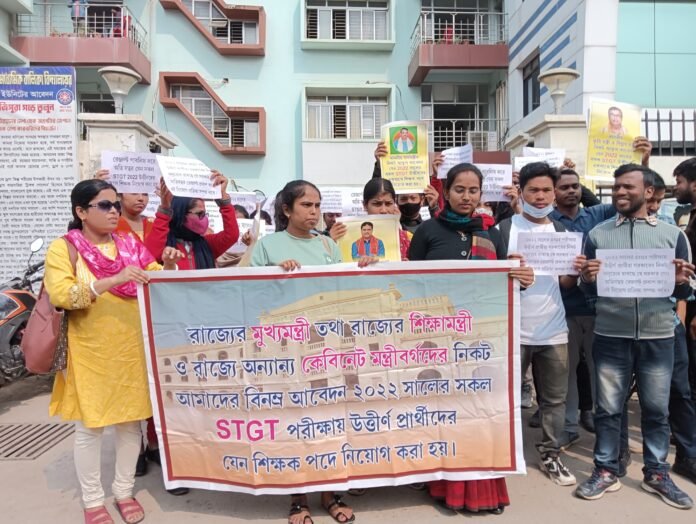 স্যন্দন ডিজিটাল ডেস্ক। আগরতলা। ১ ফেব্রুয়ারি : ২০২২ সালে এস টি জি টি পরীক্ষায় বসা চাকুরি প্রত্যাশী যুবক যুবতীরা বৃহস্পতিবার শিক্ষা ভবনে গিয়ে নিয়োগের দাবিতে বিক্ষোভ দেখায়। তারা রাজ্য সরকারের কাছে দাবি জানায় অবিলম্বে তাদের নিয়োগ করার জন্য। তারা জানায়, ২০২২ সালে সেপ্টেম্বর মাসে তারা পরীক্ষায় বসে ছিল। এখন পর্যন্ত টিআরবিটি তাদের চূড়ান্ত ফলাফল ঘোষণা করছে না।