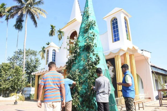 স্যন্দন ডিজিটাল ডেস্ক। আগরতলা। ২৩ ডিসেম্বর : ধর্ম যার যার, কিন্তু উৎসব সবার। আর একদিন বাদেই খ্রিস্টান ধর্মাবলম্বী মানুষদের উৎসব বড়দিন। ২৫ ডিসেম্বর বড়দিনকে সামনে রেখে রাজধানী মরিয়ম নগর গীর্জায় চলছে চূড়ান্ত প্রস্তুতি। রাজ্যের প্রথম গীর্জা হলো এটি। গীর্জাটি রাজ্যের ঐতিহ্য রক্ষা করছে। এদিকে নতুন করে সাজিয়ে তোলা হচ্ছে গীর্জা। গীর্জাকে আলোকিত করে তোলার লক্ষ্যে লাগানো হচ্ছে লাইট।