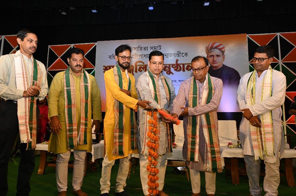 স্যন্দন ডিজিটাল ডেস্ক, আগরতলা, ২৬ জুন : সাহিত্য সম্রাট বঙ্কিমচন্দ্র চট্টোপাধ্যায়ের জন্মবার্ষিকী উপলক্ষে আয়োজন করা হয় শ্রদ্ধাঞ্জলি অনুষ্ঠান। রাজধানীর মুক্তধারা অডিটোরিয়ামে অনুষ্ঠিত হয় এই অনুষ্ঠান। অনুষ্ঠানে প্রধান অতিথি হিসেবে উপস্থিত ছিলেন যুব কল্যাণ ও ক্রীড়া দপ্তরের মন্ত্রী টিঙ্কু রায়। উপস্থিত ছিলেন তথ্য ও সংস্কৃতি দপ্তরের অধিকর্তা বিম্বিসার ভট্টাচার্য সহ অন্যান্যরা। প্রদীপ প্রজ্জলন করে অনুষ্ঠানের সুচনা করেন মন্ত্রী টিঙ্কু রায়।