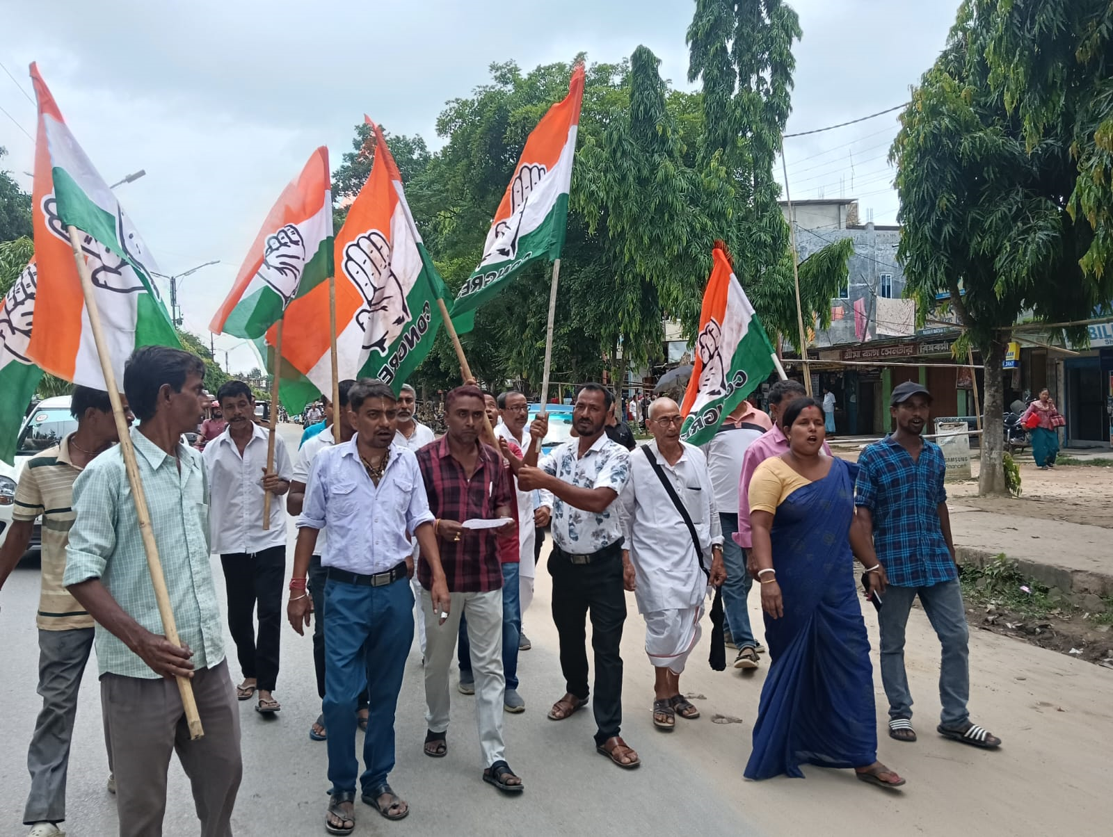 ভাঙচুর চালায় চেয়ার, টেবিল সহ বিভিন্ন সরঞ্জাম। এর পাল্টা প্রতিবাদে বৃহস্পতিবার রাস্তায় নামল কংগ্রেস।বৃহস্পতিবার ধর্মনগরে বিক্ষোভ মিছিল সংগঠিত করে কংগ্রেস কর্মী সমর্থকরা। ধর্মনগর জেলা কংগ্রেসের উদ্যোগে আয়োজিত এইদিনের মিছিলে উপস্থিত ছিলেন প্রদেশ কংগ্রেস কমিটির সাধারণ সম্পাদক আব্দুল বাছিদ চৌধুরী, সম্পাদক চয়ন ভট্টাচার্য, সম্পাদক ইন্দ্রজিৎ পাল, প্রদেশ কংগ্রেস কমিটির সদস্য হীরালাল নাথ সহ অন্যান্যরা। কংগ্রেসের মিছিলটি ধর্মনগর শহর পরিক্রমা করে ধর্মনগর থানার সামনে যায়। সেখানে কংগ্রেস কর্মী সমর্থকরা বিক্ষোভ প্রদর্শন করে। উত্তর জেলা কংগ্রেসের সাধারন সম্পাদক দিগ্বিজয় চক্রবর্তী জানান, বিগত ১১ বছর ধরে দেশ জুড়ে প্রতিটি জাতি গোষ্ঠীর উপর অন্যায় অবিচার চালিয়ে যাচ্ছে।