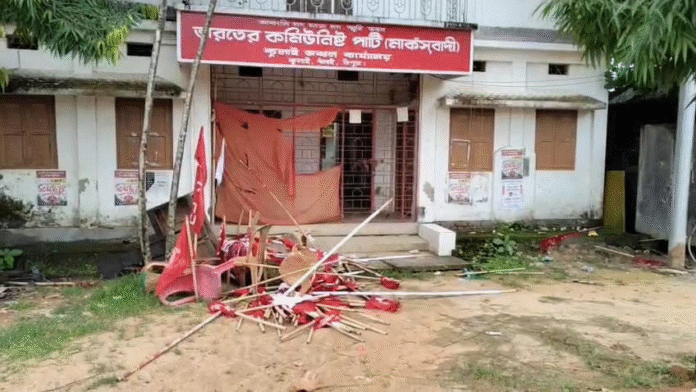 স্যন্দন ডিজিটাল ডেস্ক, আগরতলা, ১৪ জুলাই : রবিবার আমবাসা থানাধীন কুলাই বাজার স্থিত সিপিআইএম -র দলীয় কার্যালয় থেকে এক যুবক এবং এক যুবতীকে উদ্ধার করে পুলিশের হাতে তুলে দেয় স্থানীয় জনগণ। বিজেপি দলের অভিযোগ রবিবার রাত ১১টা নাগাদ সিপিএম দলের নারী নেত্রীর গুণধর ছেলে সুমিত দেববর্মা তেলিয়ামুড়া এলাকার এক যুবতীকে নিয়ে সিপিএম পার্টি অফিসের ভিতরে ফস্টিনস্টি করেছিল।