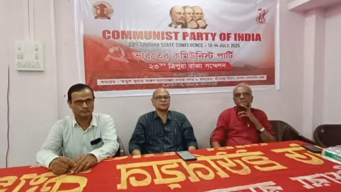 সম্মেলনে উপস্থিত রয়েছেন সিপিআই জাতীয় সম্পাদক মন্ডলীর সদস্য কে.নারায়ন এবং পল্লব সেনগুপ্ত সহ অন্যান্যরা। সোমবার দলীয় কার্যালয়ে এক সাংবাদিক সম্মেলন করে সিপিআই জাতীয় সম্পাদক মন্ডলীর সদস্য কে.নারায়ন জানান, সি পি আই দলের ২৫ তম পার্টি কংগ্রেস অনুষ্ঠিত হবে পাঞ্জাবের চন্ডিগড়ে। ২১ শে সেপ্টেম্বর থেকে ২৫ শে সেপ্টেম্বর পর্যন্ত এই সম্মেলন অনুষ্ঠিত হবে। এই সম্মেলনকে সামনে রেখে দেশের ২৬ টি রাজ্যে রাজ্য সম্মেলন অনুষ্ঠিত হচ্ছে। এই সম্মেলনের মূল রণধ্বনি হচ্ছে দেশ থেকে বিজেপি এবং আরএসএস নেতৃত্বধীন সরকারকে ক্ষমতা থেকে সরাতে হবে। এর জন্য বড় মঞ্চ গড়ে তুলতে হবে বামপন্থীদের। আরো বলেন, মঞ্চ করার আগে বামপন্থীদের আরো বেশি শক্তিশালী হিসেবে আত্মপ্রকাশ করতে হবে। তিনি আরো বলেন ত্রিপুরা মানুষ যেভাবে বর্তমান সরকারের বিরুদ্ধে প্রতিরোধে এগিয়ে আছে সেটা লক্ষ্যণীয়। তাই বামপন্থীদের জনগণকে নিয়ে এগোতে হবে। পাশাপাশি বলেন, জনজাতি অংশের যুবকরা যদি বামপন্থীদের পাশে দাঁড়ায় তাহলে ঐতিহাসিক মঞ্চ গড়ে উঠবে। তাহলে অনায়াসে ত্রিপুরার মানুষকে আরএসএস এবং বিজেপির হাত থেকে মুক্ত করা যাবে বলে জানান তিনি।