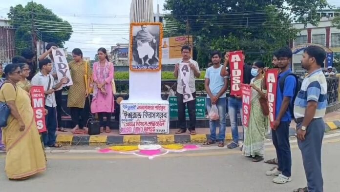 স্যন্দন ডিজিটাল ডেস্ক, আগরতলা, ২৯ জুলাই : ২৯ জুলাই নবজাগরণের পথিকৃৎ ঈশ্বরচন্দ্র বিদ্যাসাগরের ১৩৪ তম প্রয়াণ দিবসে গভীর শ্রদ্ধা ও কৃতজ্ঞতার সাথে তাঁকে স্মরণ করল এ আই ডি এস ও, এ আই ডি ওয়াই ও এবং এ আই এম এস এস -এর ত্রিপুরা রাজ্য কমিটি। এই উপলক্ষে রাজধানী আগরতলার পোস্ট অফিস চৌমুহনী এলাকায় বিদ্যাসাগরের প্রতিকৃতিতে পুষ্পার্ঘ্য অর্পণ করে শ্রদ্ধা নিবেদন করেন সংগঠনের নেতৃবৃন্দ। উপস্থিত ছিলেন এ আই ডি এস ও-র রাজ্য সম্পাদক রামপ্রসাদ আচার্য সহ অন্যান্য নেতৃত্ব।