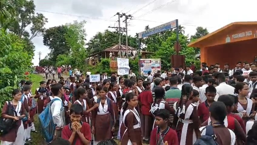 বাড়িরাজ্যশিক্ষকের দাবিতে কাঞ্চনপুর-ধর্মনগর সড়ক অবরোধ করল ছাত্রছাত্রীরা